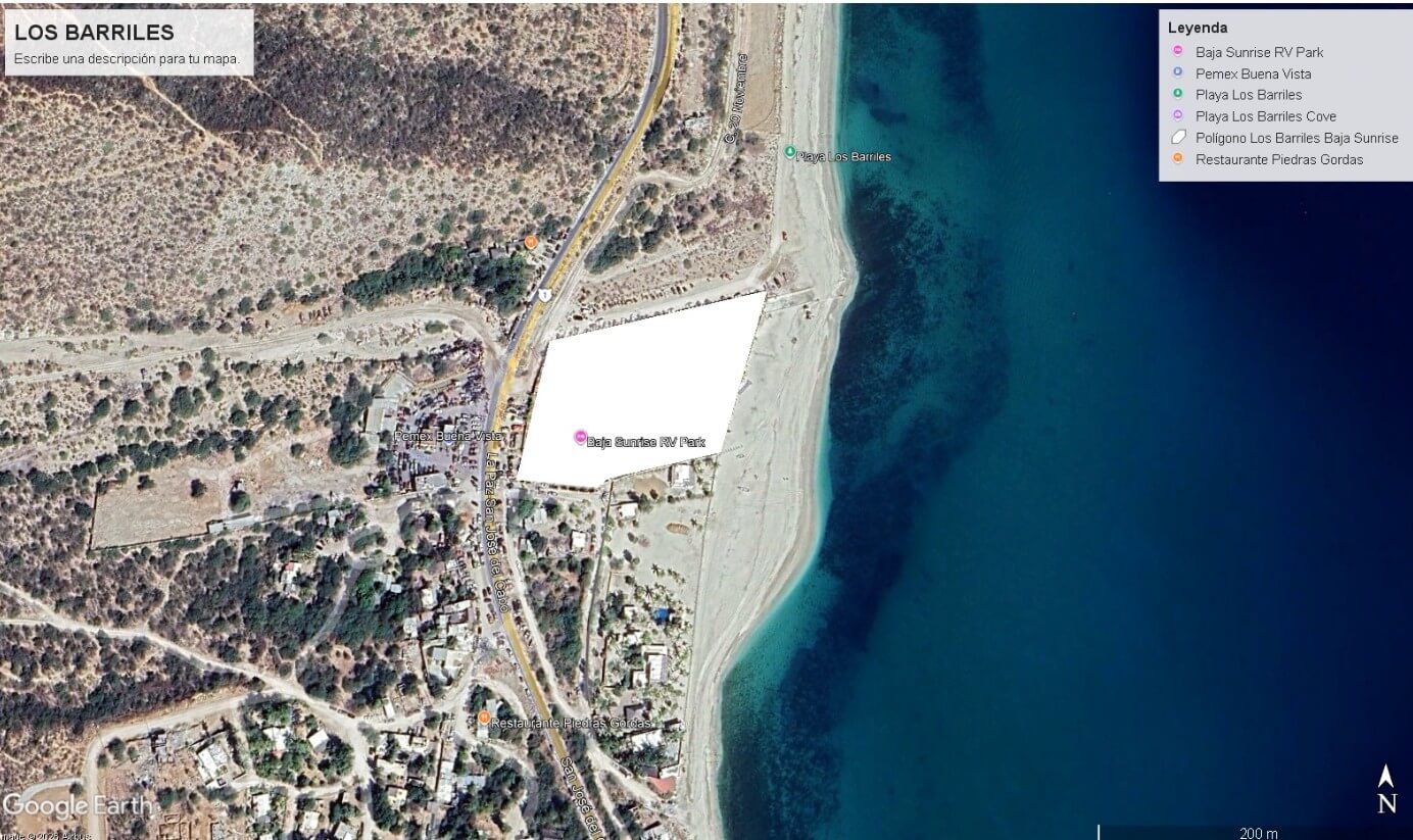 La propiedad se encuentra en Los Barriles, Baja California Sur, una zona de alta plusvalía con gran potencial de desarrollo. Su frente al mar y acceso inmediato a servicios turísticos, deportes acuáticos y actividades recreativas la convierten en un espacio privilegiado para proyectos de alto nivel.